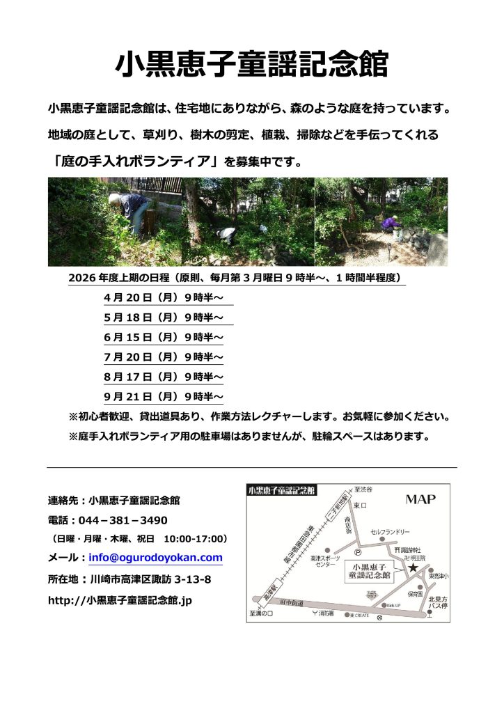 当館では、「庭の手入れボランティア」を募集しています。