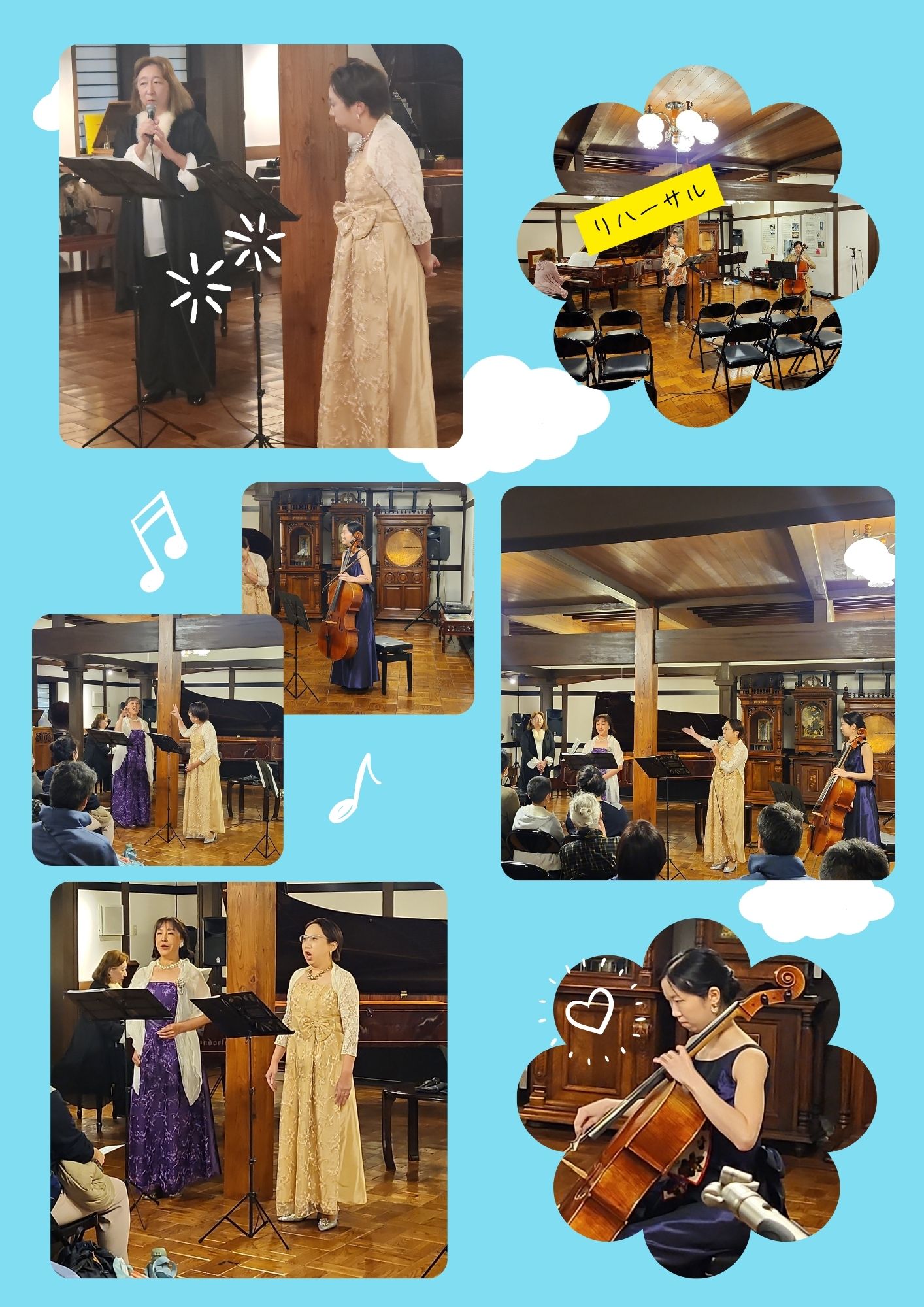 笹子まさえ(ピアノ)・大森寿枝(うた)・公文理恵(うた)・鈴木黎子(チェロ)